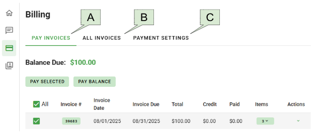 Note that Automatic Payments are processed 10-14 days after invoices are sent.