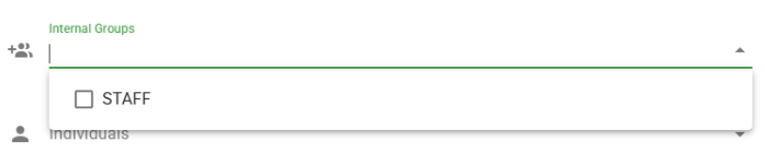 These groups are not visible on your Sign-up Page. To send a text message to one or more Message Groups, click the "down" arrow to the right of the field and select the desired group(s). Begin typing to filter by name.