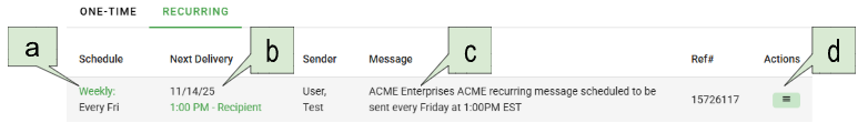 To schedule a message for recurring delivery, click on the “Recurring” toggle. When scheduling a recurring message, you have four options the recurring schedule: