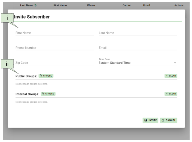 ii. Select the groups desired for the subscriber and click the Invite button.